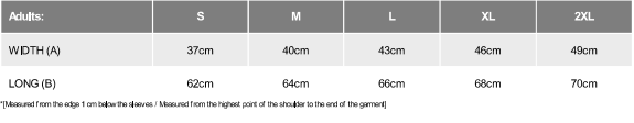 Unisex t-paita mallin ja hihattoman naisten mallin kokotaulukot löydät kuvista.